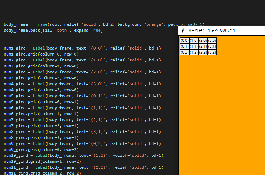 num1_gird = Label(body_frame, text='(0,0)', relief='solid', bd=1)