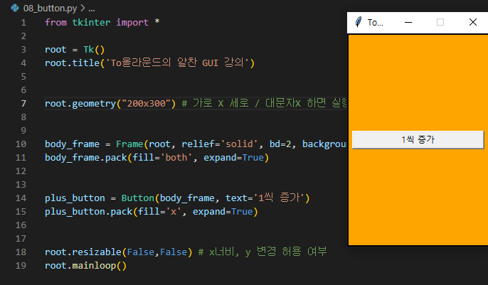 plus_button = Button(body_frame, text='1씩 증가')
