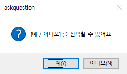 - 예를 들어 askyesnocancel을 이용하여 결과 값을 먼저 변수로 받아보고
