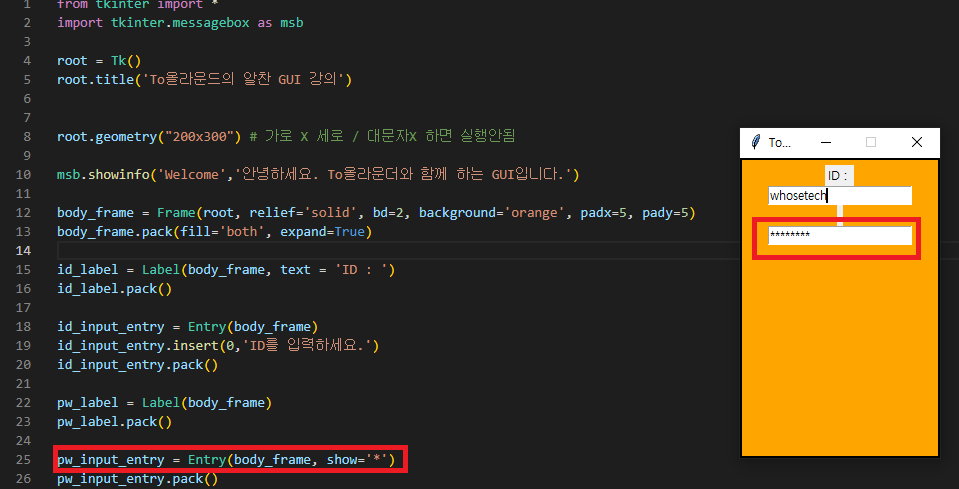 - 21라인에서 생성한 id_input_entry 를 출력하는 print_id_entry_value 함수를 생성했다.