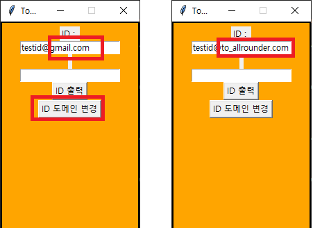 - 위의 id_entry_edit 함수에서 보듯이 입력된 내용을 확인하고 우리가 원하는 도메인으로 변경하는 과정을 진행할 수 있다.