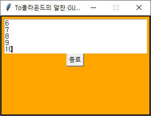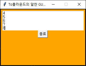 quit_btn = Button(body_frame, text='종료', command=quit)