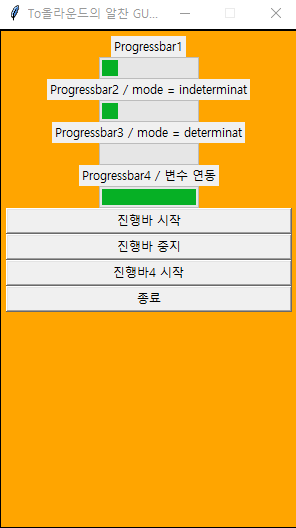 progressbar_start_btn = Button(body_frame, text='진행바 시작', command=progressbar_start)