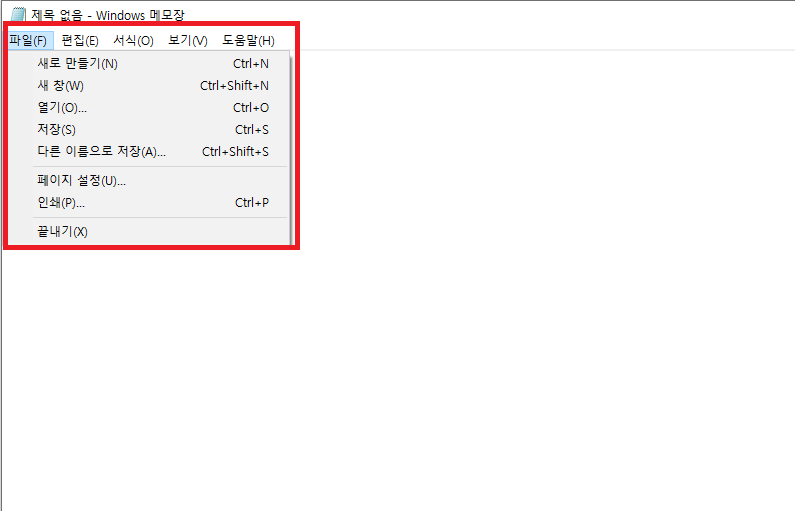 단순해보이는 메모장만 하더라도 화면뿐 아니라 상단에 메뉴바가 있다.
