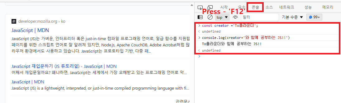 단순히 크롬이나 엣지같은 브라우저에서 개발자 도구[F12] - 콘솔 창을 열기만 해도